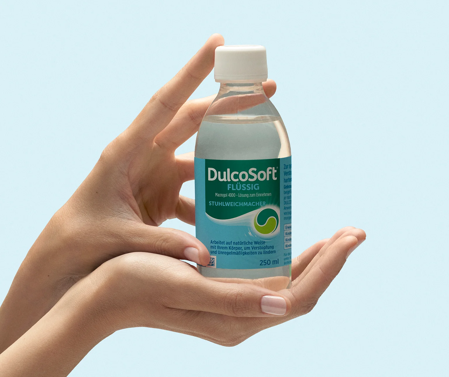 DulcoSoft® Flüssig bindet Wasser und weicht harten Stuhl auf, für eine angenehmere Erleichterung. DulcoSoft® fördert schonend einen regelmäßigen Stuhlgang.