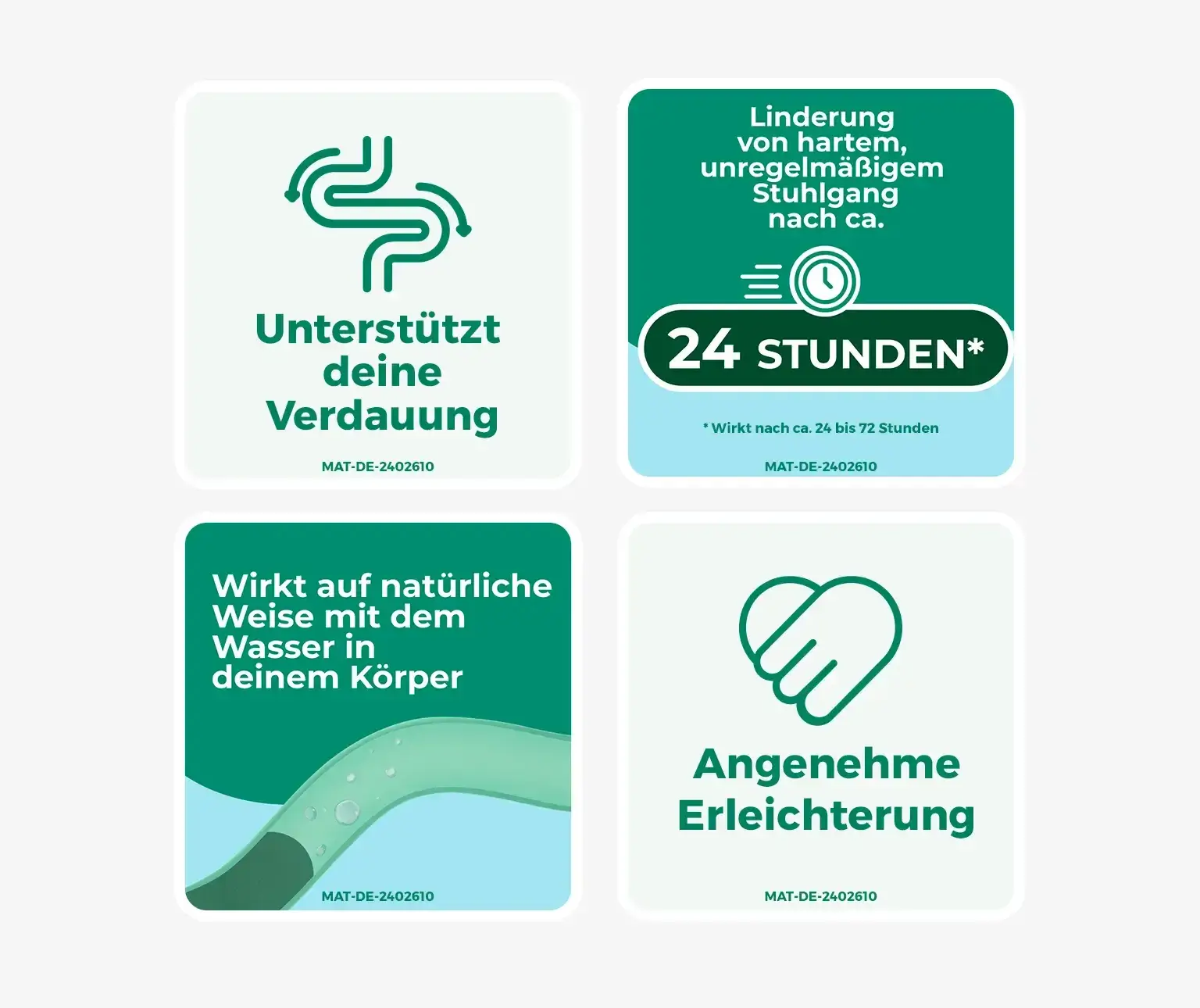 Osmotische Abführmittel oder Stuhlweichmacher, zu denen auch die Produkte von DulcoSoft® (Macrogol) gehören, unterstützen den Körper beim Stuhlgang, indem sie die Flüssigkeitsaufnahme im Dickdarm reduzieren. Diese Präparate enthalten Substanzen (z.B. Macrogol), die Flüssigkeit im Dickdarm binden. Auf diese Weise wird der Flüssigkeitsgehalt des Stuhls erhöht. Sie weichen den Stuhl im Darm auf, sodass der Stuhlgang leichter und angenehmer wird. Diese Abführmittel sind, wenn sie bestimmungsgemäß angewendet werden, eine sichere, sanfte Methode, den Darm in Schwung zu bringen, um wieder leichten und regelmäßigen Stuhlgang zu erreichen.