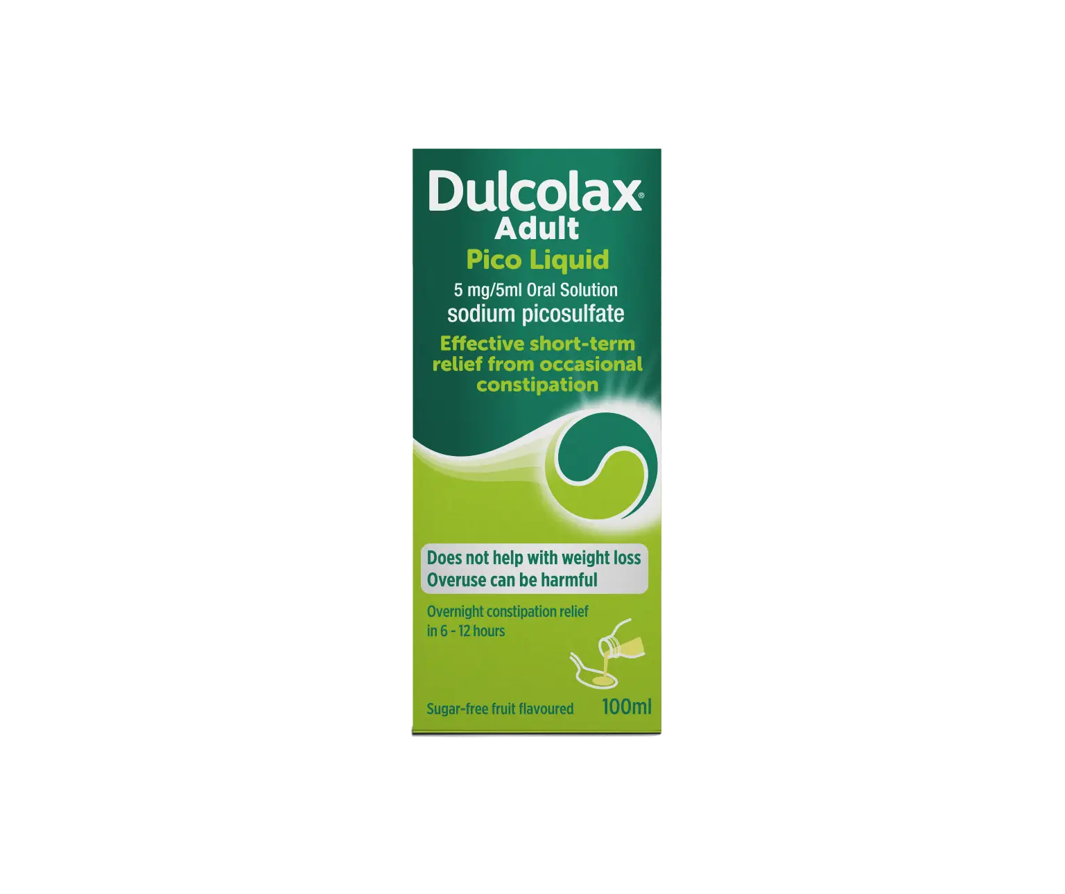 DulcoLax® Adult Pico Liquid works with the water in your body to provide predictable and comfortable relief from constipation in 6 to 12 hours.